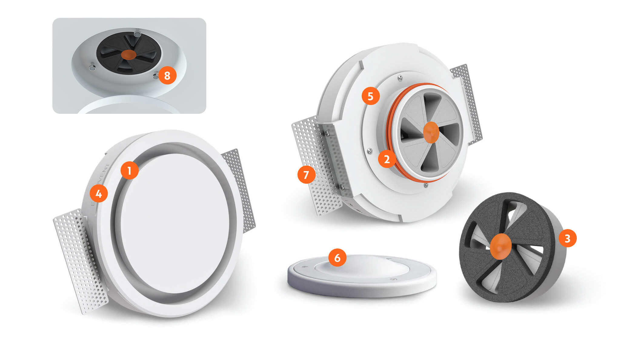 ERGOVENT gipsiniai difuzoriai išsiskiria elegantišku dizainu ir tyliu veikimu, todėl yra ypač vertingi bet kuriai moderniai erdvei.